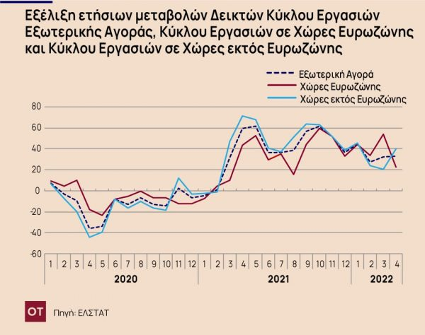 • Αύξηση κατά 22,5% του Δείκτη Κύκλου Εργασιών Εξωτερικής Αγοράς Ευρωζώνης .